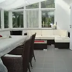 Willa Ferienhaus Mit Wintergarten Am See oferuje kuchnię, urządzenie do parzenia kawy/herbaty. W kuchni znajdują się kuchenka mikrofalowa, czajnik elektryczny i lodówka.